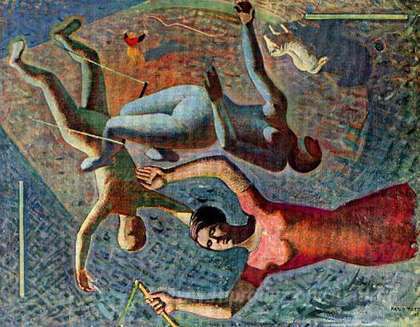 Ti offriamo una riproduzione artigianale su tela dell'opera famosa 'Il Circo' di Mario Tozzi, dal Museo delle Riproduzioni.