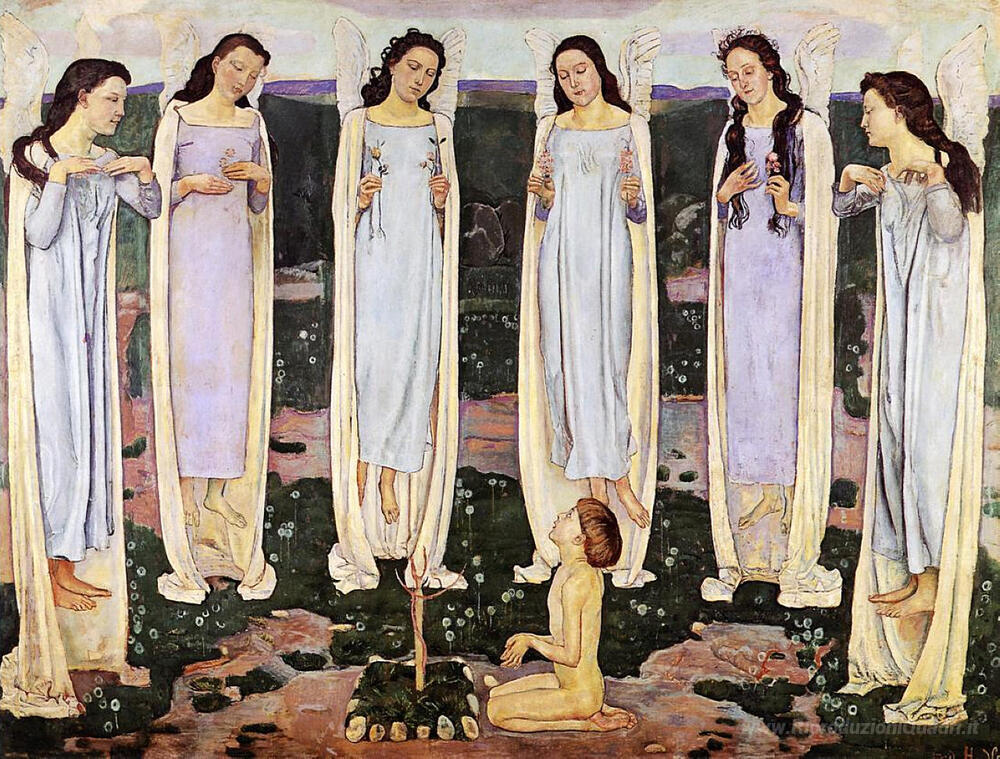 Ti offriamo una riproduzione artigianale su tela dell'opera famosa 'Il Consacrato' di Ferdinand Hodler, dal Museo delle Riproduzioni.