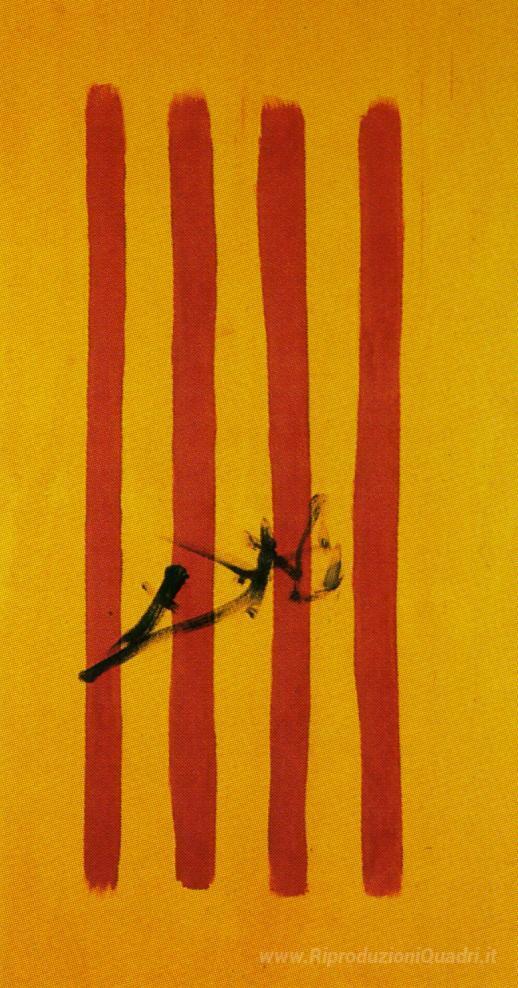 Ti offriamo una riproduzione artigianale su tela dell'opera famosa 'Il daliniano Senyera (catalano bandiera nazionale)' di Salvador Dali, dal Museo delle Riproduzioni.