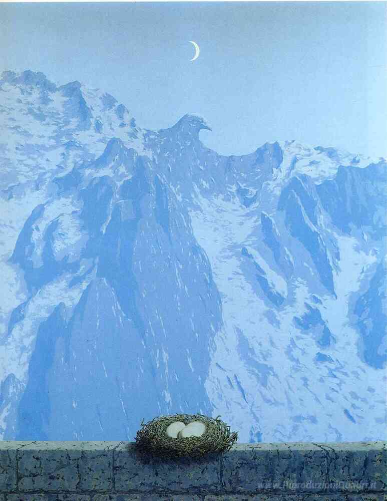Ti offriamo una riproduzione artigianale su tela dell'opera famosa 'Il dominio di Arnheim' di Rene Magritte, dal Museo delle Riproduzioni.