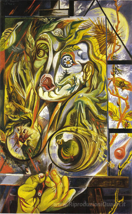 Ti offriamo una riproduzione artigianale su tela dell'opera famosa 'Il pittore e il tempo' di Andre Masson, dal Museo delle Riproduzioni.