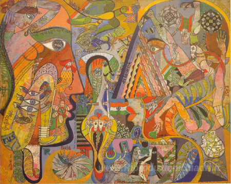 Ti offriamo una riproduzione artigianale su tela dell'opera famosa 'Immagini che ricordano' di Jyoti Bhatt, dal Museo delle Riproduzioni.