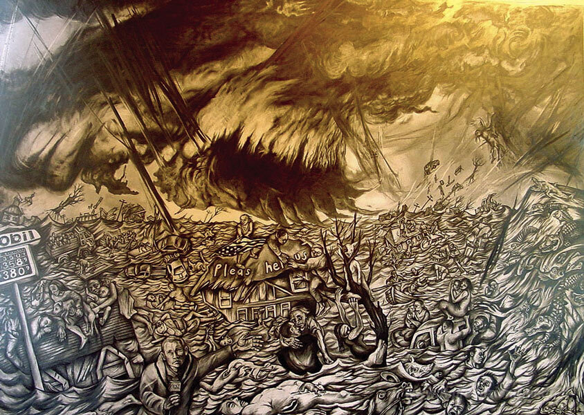 Ti offriamo una riproduzione artigianale su tela dell'opera famosa 'Kathelp-us' di Sue Coe, dal Museo delle Riproduzioni.
