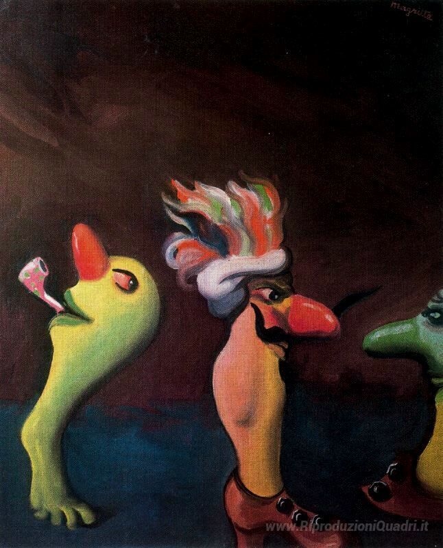 Ti offriamo una riproduzione artigianale su tela dell'opera famosa 'La marcia trionfale' di Rene Magritte, dal Museo delle Riproduzioni.