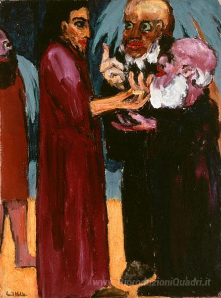 Ti offriamo una riproduzione artigianale su tela dell'opera famosa 'La moneta del tributo' di Emil Nolde, dal Museo delle Riproduzioni.