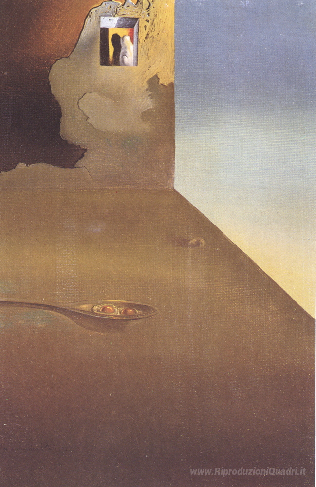 Ti offriamo una riproduzione artigianale su tela dell'opera famosa 'La riunione del illusione e il momento Arrested - Uova fritte Pr' di Salvador Dali, dal Museo delle Riproduzioni.