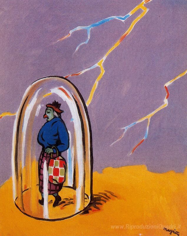 Ti offriamo una riproduzione artigianale su tela dell'opera famosa 'La spina di traino' di Rene Magritte, dal Museo delle Riproduzioni.