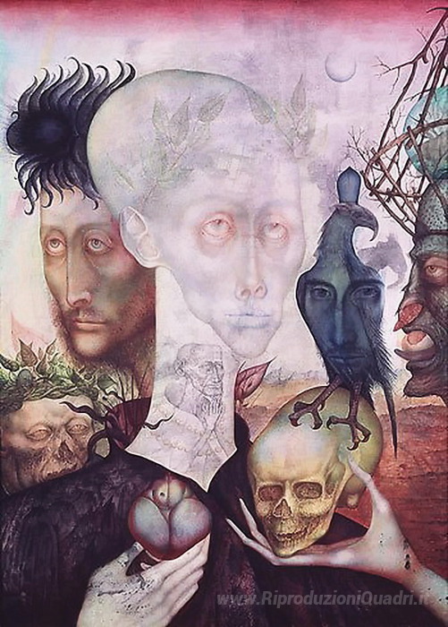 Ti offriamo una riproduzione artigianale su tela dell'opera famosa 'LA TENTAZIONE DEL VINCITORE' di Ernst Fuchs, dal Museo delle Riproduzioni.