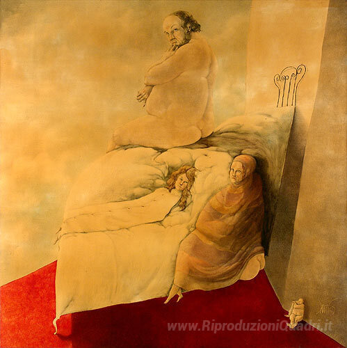 Ti offriamo una riproduzione artigianale su tela dell'opera famosa 'La Vigilia' di Benjamin Canas, dal Museo delle Riproduzioni.