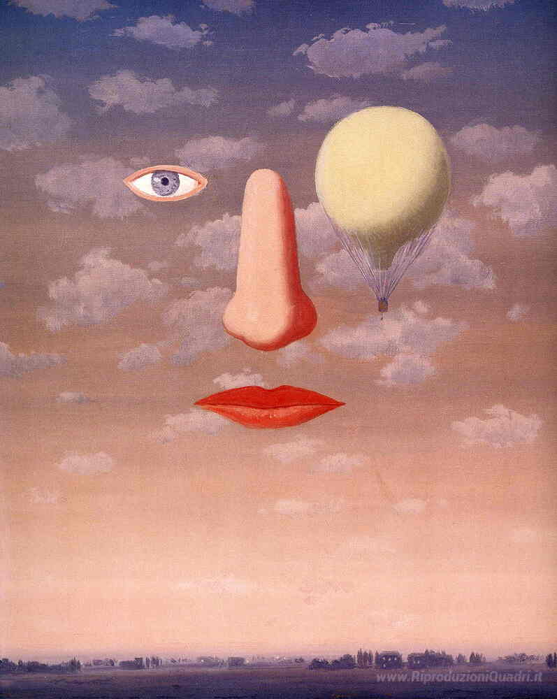Ti offriamo una riproduzione artigianale su tela dell'opera famosa 'Le bellissime relazioni' di Rene Magritte, dal Museo delle Riproduzioni.