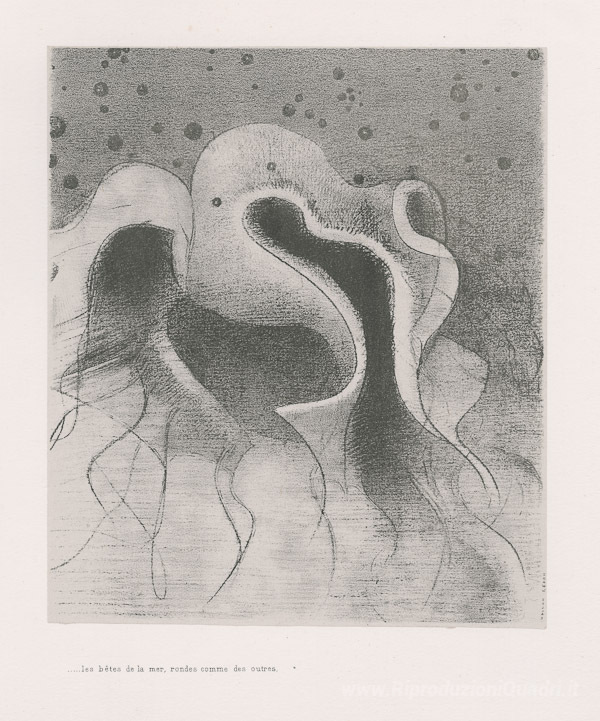 Ti offriamo una riproduzione artigianale su tela dell'opera famosa 'Le bestie del mare, tondo come le bottiglie in pelle (targa 22)' di Odilon Redon, dal Museo delle Riproduzioni.