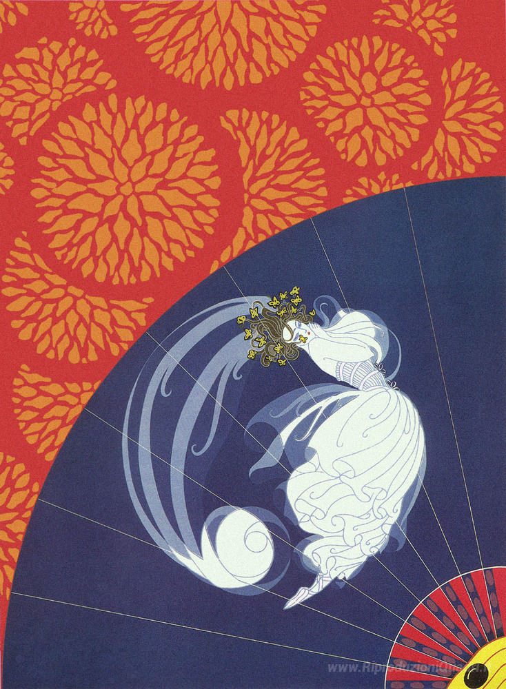 Ti offriamo una riproduzione artigianale su tela dell'opera famosa 'Leggerezza' di Erte, dal Museo delle Riproduzioni.