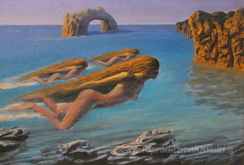 Ti offriamo una riproduzione artigianale su tela dell'opera famosa 'Levitazione' di Sabin Balasa, dal Museo delle Riproduzioni.