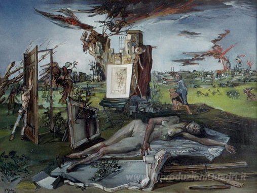 Ti offriamo una riproduzione artigianale su tela dell'opera famosa 'L'hommage à Callot' di Francis Gruber, dal Museo delle Riproduzioni.