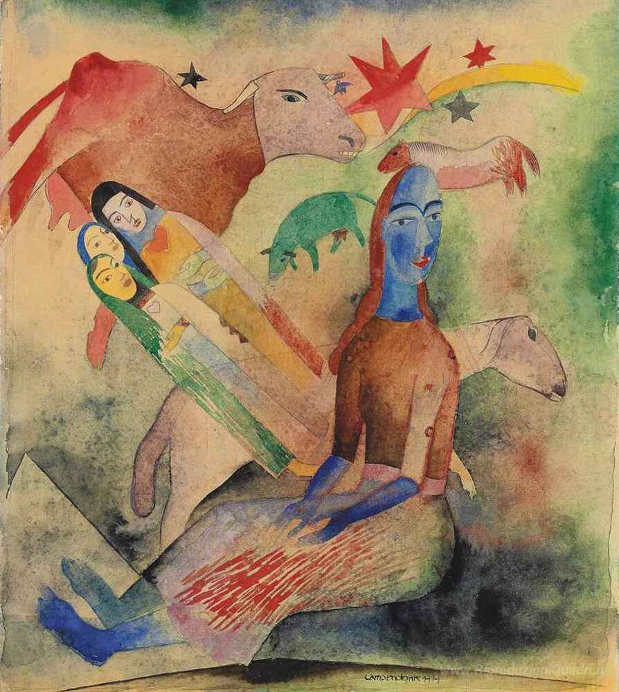 Ti offriamo una riproduzione artigianale su tela dell'opera famosa 'Maria Verkündigung' di Heinrich Campendonk, dal Museo delle Riproduzioni.
