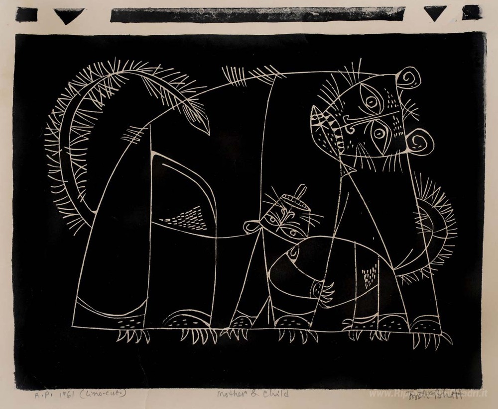 Ti offriamo una riproduzione artigianale su tela dell'opera famosa 'Mother & Child' di Jyoti Bhatt, dal Museo delle Riproduzioni.