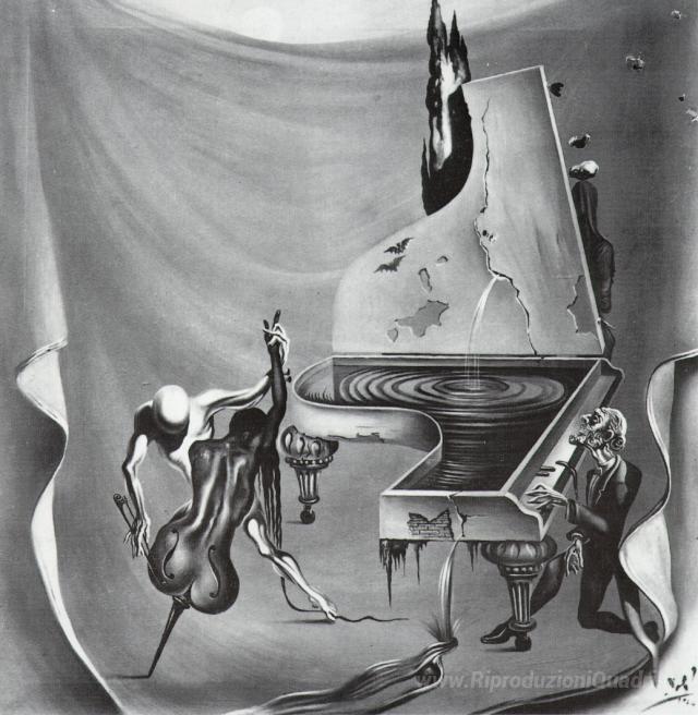 Ti offriamo una riproduzione artigianale su tela dell'opera famosa 'Musica - L'Orchestra Rossa' di Salvador Dali, dal Museo delle Riproduzioni.