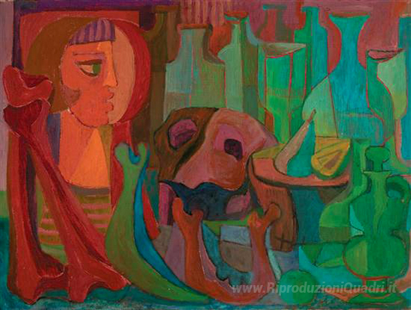 Ti offriamo una riproduzione artigianale su tela dell'opera famosa 'Natura morta' di Pedro Coronel, dal Museo delle Riproduzioni.