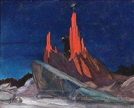 Ti offriamo una riproduzione artigianale su tela dell'opera famosa 'Omaggio a San Giovanni Battista' di Nicholas Roerich, dal Museo delle Riproduzioni.