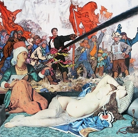 Ti offriamo una riproduzione artigianale su tela dell'opera famosa 'Petrolio cinese' di Erro, dal Museo delle Riproduzioni.