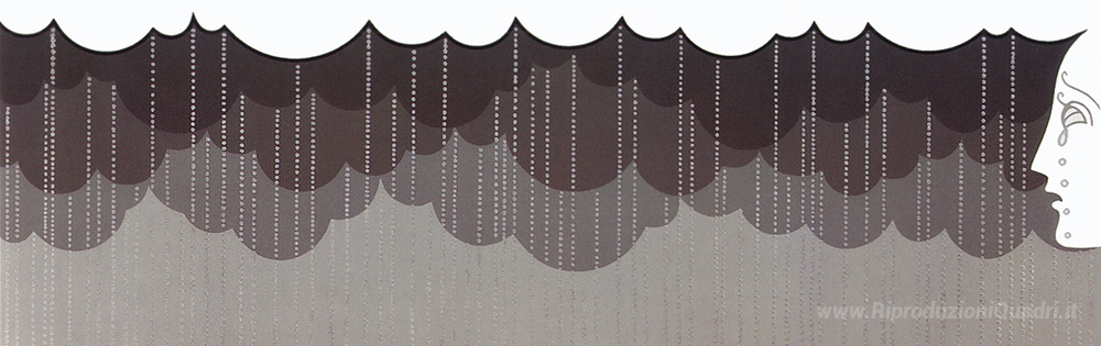 Ti offriamo una riproduzione artigianale su tela dell'opera famosa 'Pioggia' di Erte, dal Museo delle Riproduzioni.