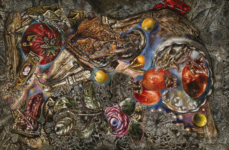 Immerso in un'atmosfera di profonda introspezione e delicatezza, Pregate per questi piccoli (Perforce Vivono insieme) di Ivan Albright rappresenta un'espressione artistica straordinaria, che fonde maestria tecnica e sensibilità emotiva. Albright, noto per il suo stile unico e dettagliato, riesce a catturare l'essenza della fragilità umana attraverso pennellate aggraziate e una palette di colori vibranti. La sua abilità nel ritrarre momenti di vita quotidiana conferisce a quest'opera un'intensità che invita alla riflessione.