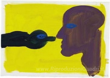 Ti offriamo una riproduzione artigianale su tela dell'opera famosa 'Ragazzo e Bird' di Rainer Fetting, dal Museo delle Riproduzioni.