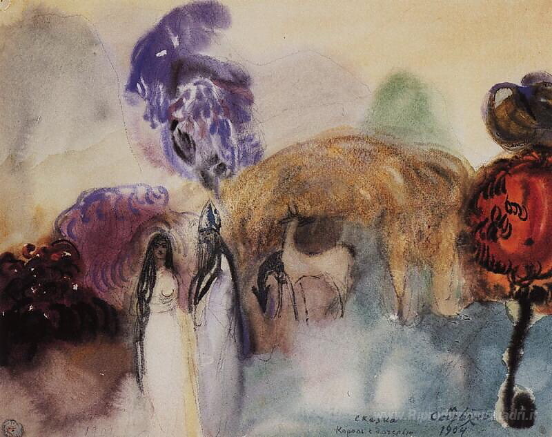 Ti offriamo una riproduzione artigianale su tela dell'opera famosa 'Re con la figlia' di Martiros Saryan, dal Museo delle Riproduzioni.