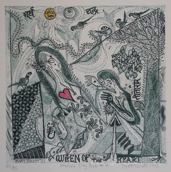 Ti offriamo una riproduzione artigianale su tela dell'opera famosa 'Regina del Cuore' di Jyoti Bhatt, dal Museo delle Riproduzioni.