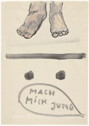 Ti offriamo una riproduzione artigianale su tela dell'opera famosa 'Senza titolo' di Rosemarie Trockel, dal Museo delle Riproduzioni.