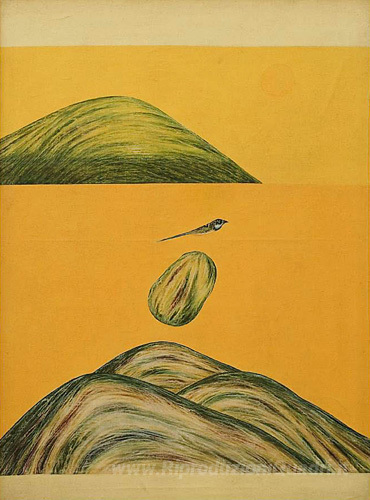 Ti offriamo una riproduzione artigianale su tela dell'opera famosa 'Senza titolo' di Jagdish Swaminathan, dal Museo delle Riproduzioni.