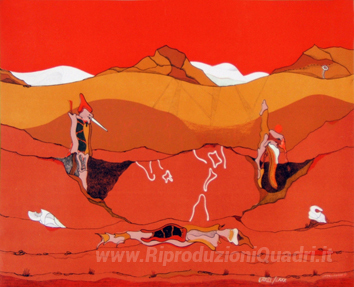 Ti offriamo una riproduzione artigianale su tela dell'opera famosa 'Senza titolo' di Jorge Camacho, dal Museo delle Riproduzioni.