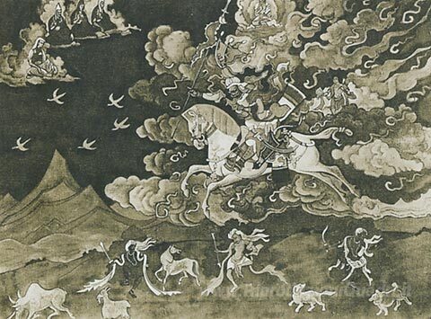 Ti offriamo una riproduzione artigianale su tela dell'opera famosa 'Shambala sta andando' di Nicholas Roerich, dal Museo delle Riproduzioni.