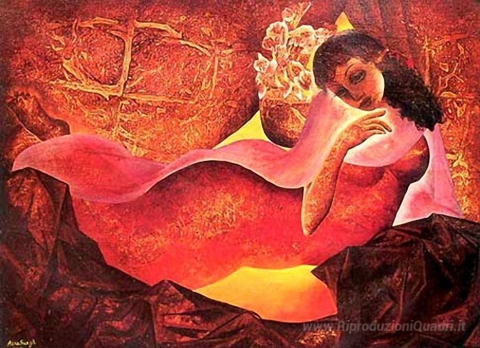 Scoprite l’incanto di Shringaar, un’opera straordinaria di Amrita Sher-Gil, una delle artiste più autorevoli del XX secolo. Nata in India, Sher-Gil ha saputo fondere influenze occidentali e tradizioni orientali, dando vita a un linguaggio visivo unico, ricco di emozione e profondità. Il suo stile, caratterizzato da pennellate audaci e un uso magistrale dei colori, invita lo spettatore a esplorare il mondo interiore dei suoi soggetti, rivelando intimamente la bellezza e la complessità della vita umana.