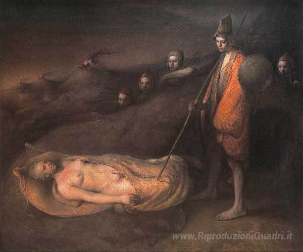 Ti offriamo una riproduzione artigianale su tela dell'opera famosa 'Sleeping profeta' di Odd Nerdrum, dal Museo delle Riproduzioni.
