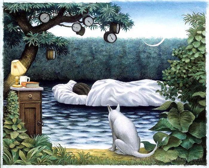 Ti offriamo una riproduzione artigianale su tela dell'opera famosa 'Sognare' di Jacek Yerka, dal Museo delle Riproduzioni.
