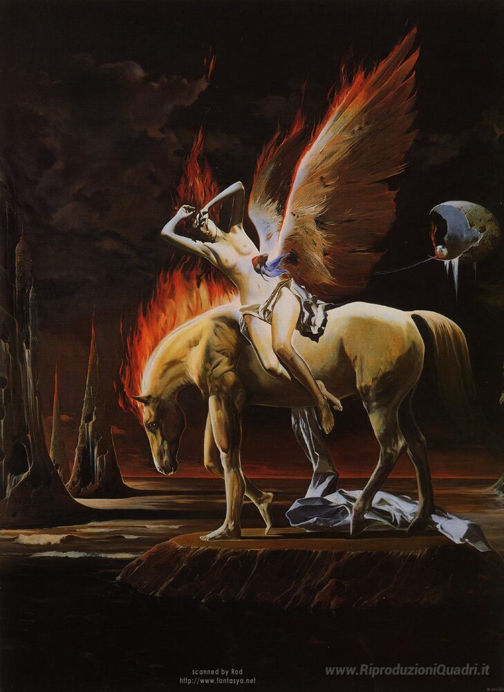 Ti offriamo una riproduzione artigianale su tela dell'opera famosa 'Sogno di Pegaso' di Wojciech Siudmak, dal Museo delle Riproduzioni.