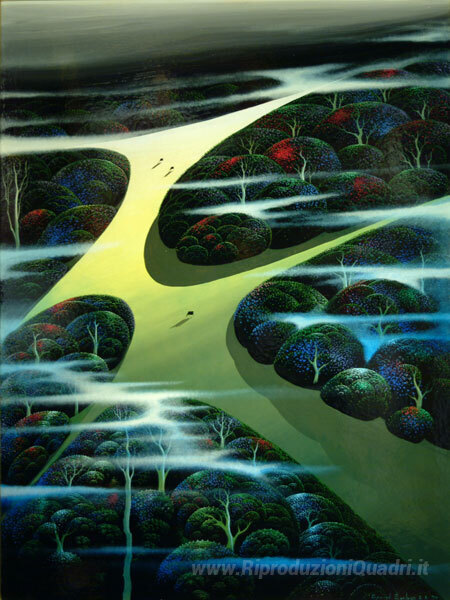 Ti offriamo una riproduzione artigianale su tela dell'opera famosa 'Sopra la Fogl' di Eyvind Earle, dal Museo delle Riproduzioni.