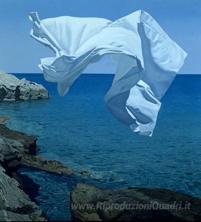 Ti offriamo una riproduzione artigianale su tela dell'opera famosa 'Symi (Gettato Tendaggi)' di David Ligare, dal Museo delle Riproduzioni.
