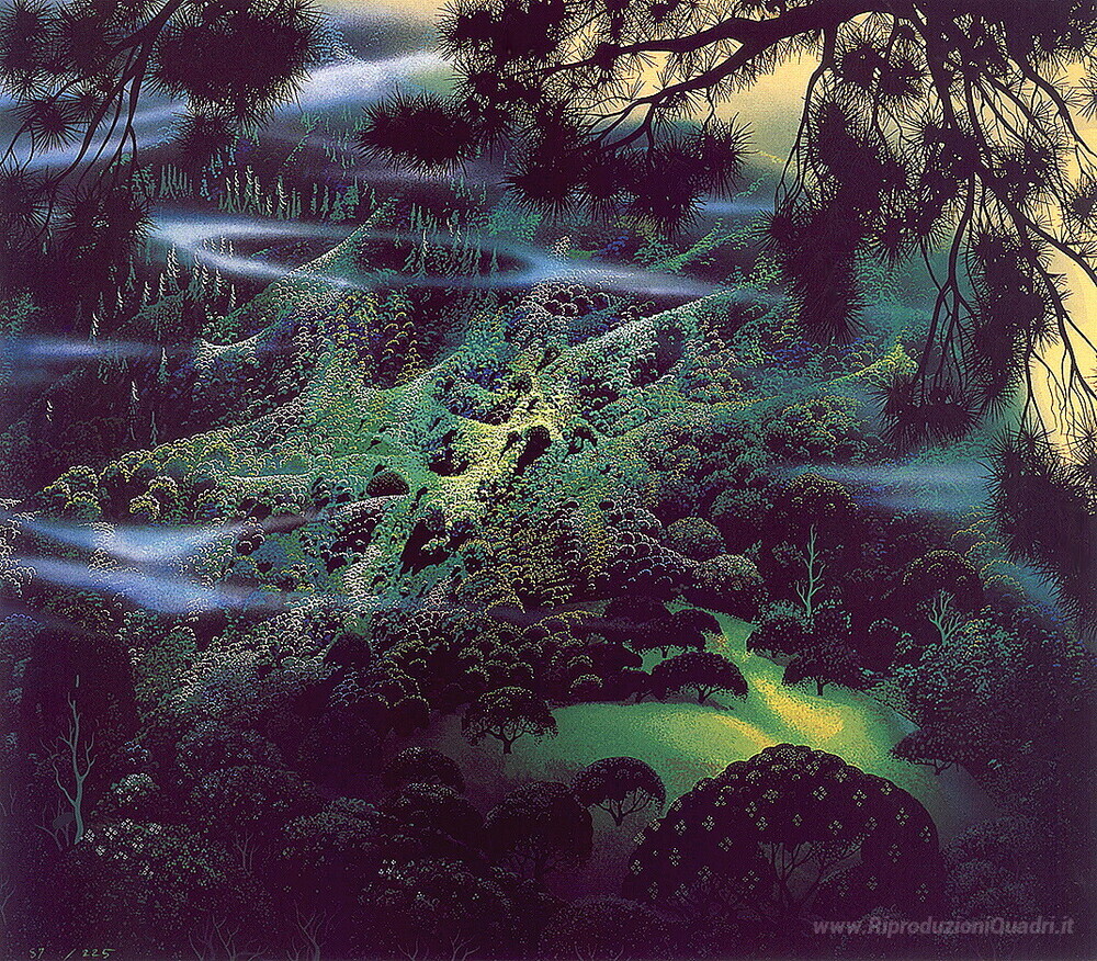 Benvenuti nel nostro esclusivo catalogo di dipinti a olio italiani, dove ogni opera racconta una storia e arricchisce l'ambiente in cui viene collocata. Tra le gemme della nostra collezione, spicca l’incantevole opera Symphonic Fantasy realizzata dal maestro Eyvind Earle. Questo artista, noto per il suo stile distintivo che fonde naturalismo e astrazione, cattura l’essenza della natura con una palette vibrante e forme sinuose.