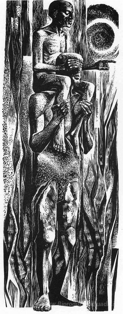 Ti offriamo una riproduzione artigianale su tela dell'opera famosa 'Taro Uomini' di Lynd Ward, dal Museo delle Riproduzioni.