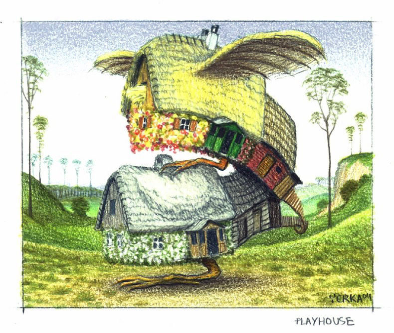 Ti offriamo una riproduzione artigianale su tela dell'opera famosa 'Teatro' di Jacek Yerka, dal Museo delle Riproduzioni.