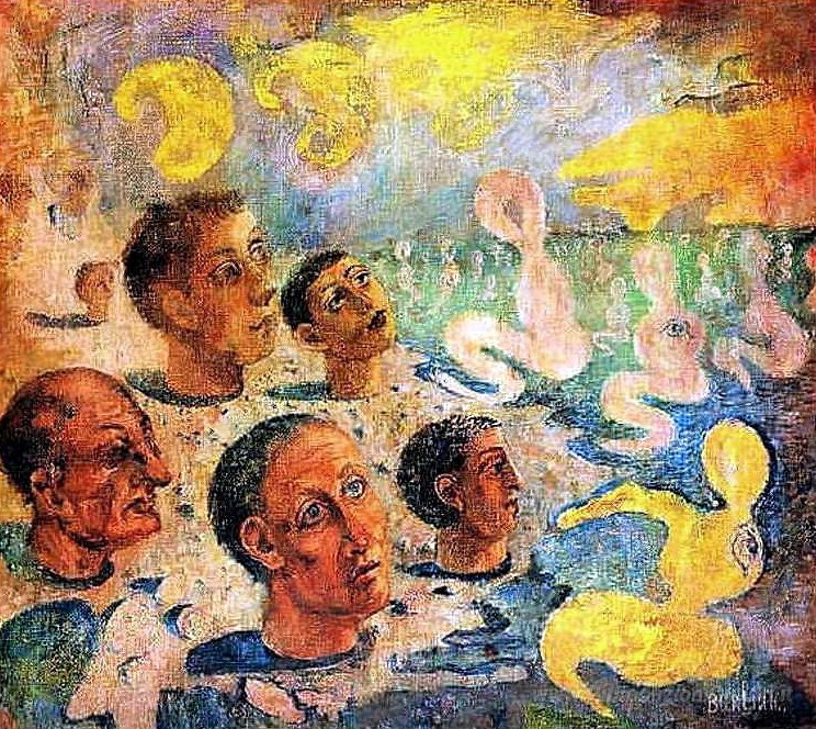 Ti offriamo una riproduzione artigianale su tela dell'opera famosa 'Teste sulla spiaggia' di David Burliuk, dal Museo delle Riproduzioni.