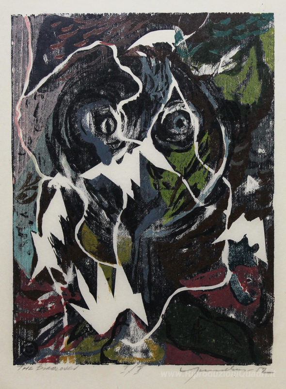 Ti offriamo una riproduzione artigianale su tela dell'opera famosa 'The Bird Lover' di Adja Yunkers, dal Museo delle Riproduzioni.