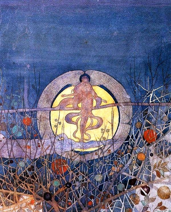 Ti offriamo una riproduzione artigianale su tela dell'opera famosa 'The Harvest Moon' di Charles Rennie Mackintosh, dal Museo delle Riproduzioni.