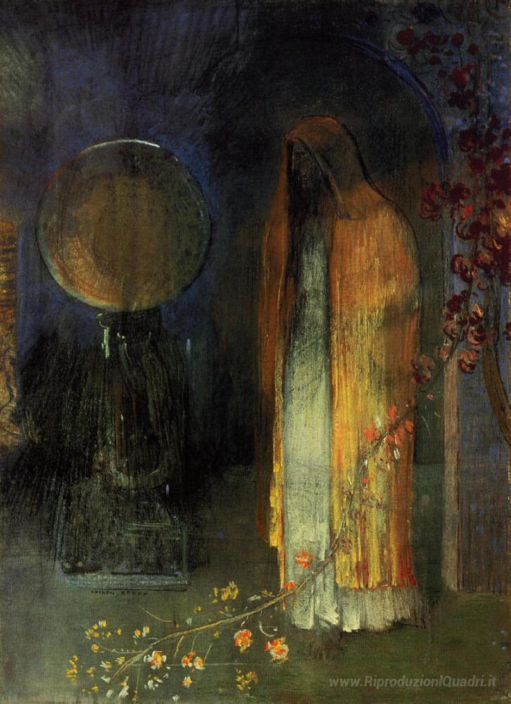 Ti offriamo una riproduzione artigianale su tela dell'opera famosa 'The Yellow Cape' di Odilon Redon, dal Museo delle Riproduzioni.