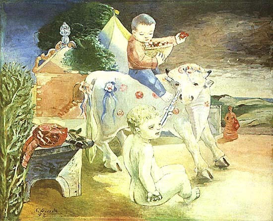 Ti offriamo una riproduzione artigianale su tela dell'opera famosa 'Una Festa' di Antonio Dacosta, dal Museo delle Riproduzioni.