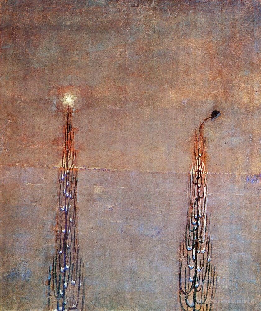 Immergetevi nell'eleganza senza tempo dell'arte italiana con il capolavoro Winter (IV) del rinomato artista Mikalojus Ciurlionis. Questo straordinario dipinto a olio, creato con maestria, cattura l'essenza del paesaggio invernale attraverso una fusione di colori e forme che evocano un'esperienza visiva coinvolgente. Ciurlionis, celebre per la sua capacità di combinare simbolismo e impressionismo, riesce a trasmettere emozioni profonde con ogni pennellata.