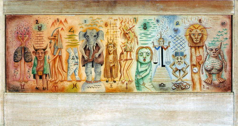 Ti offriamo una riproduzione artigianale su tela dell'opera famosa 'Zodiaco' di Xul Solar, dal Museo delle Riproduzioni.