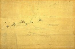 La donna, seduta accanto al fuoco, pelare patate, Schizzo di una